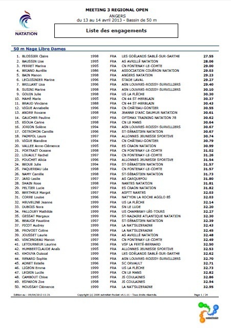 La liste des qualifiés pour le Challenge A. Lelievre de La Roche Sur Yon est disponible sur le site de la région Pays de Loire : Cliquer ici