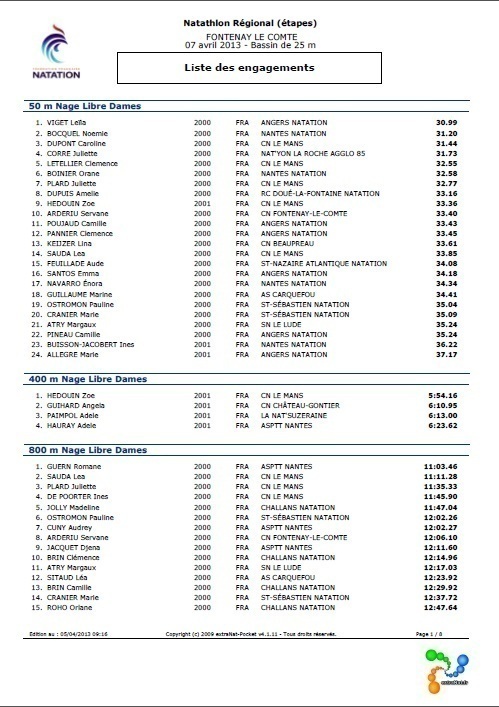 La start list du Natathlon 2 Régional qui se déroulera ce dimanche à Fontenay-Le-Comte est disponible sur le site régional des Pays de Loire : Suivez le lien