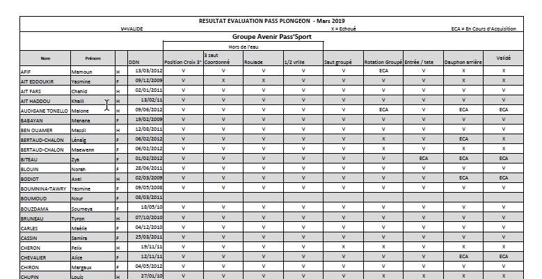 Résultats des évaluations Pass'Sport